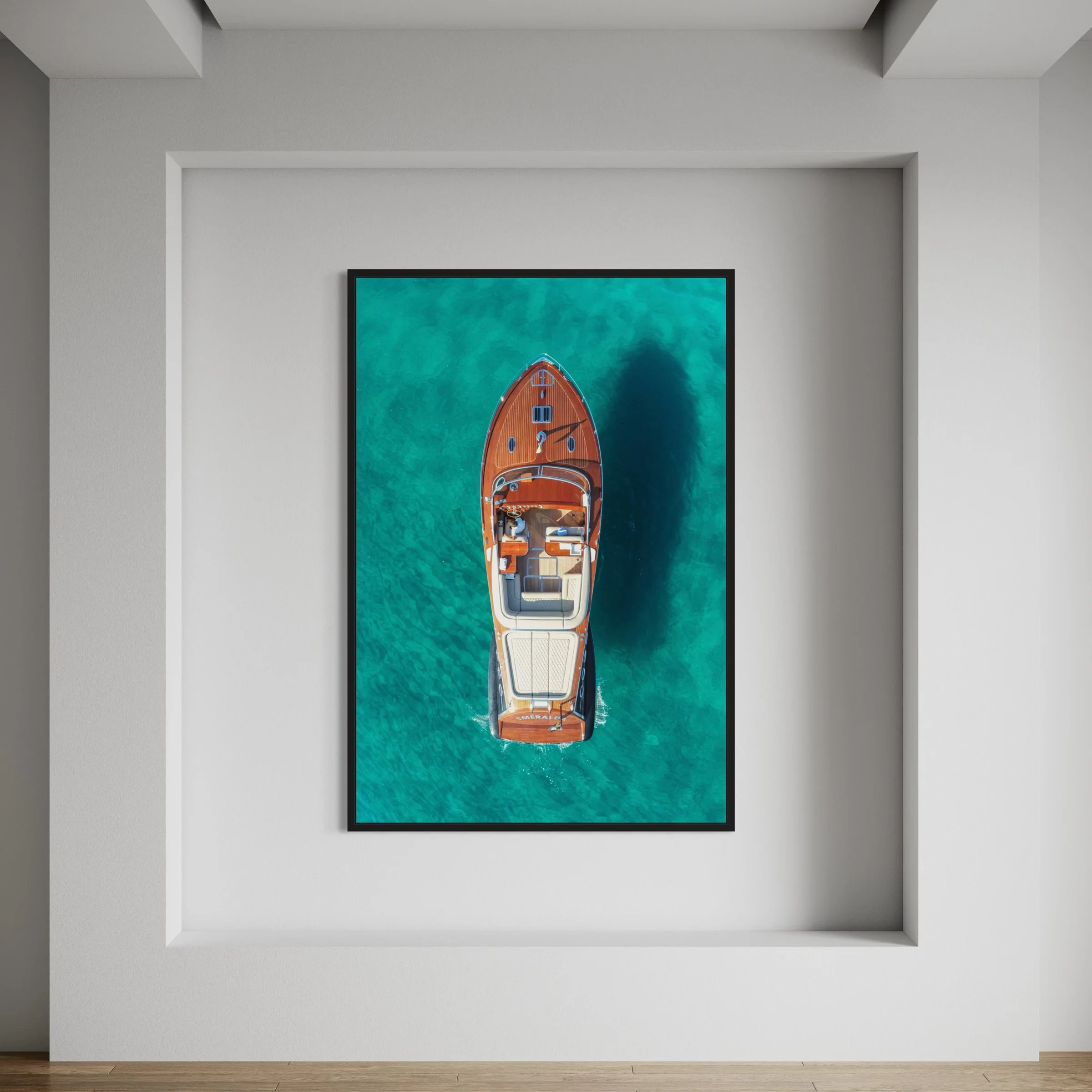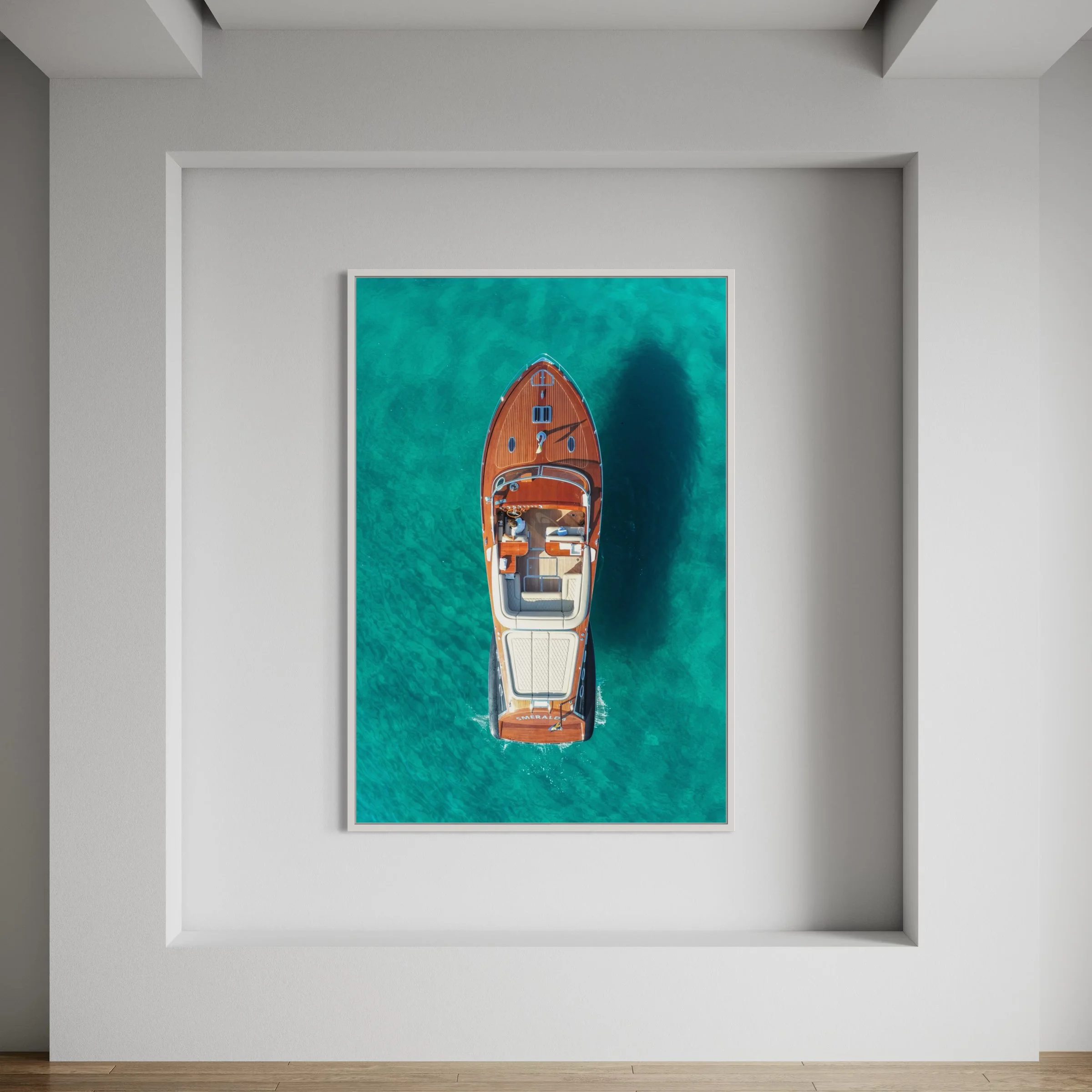 For maximum impact, these Artworks are printed directly on the white surface Aluminium Dibond panel. A 3 mm thick composite plate composed of three layers: two platinum-white aluminum plates surrounding a black polyethylene core. The result is a UV and moisture resistant photo with a matte finish and no reflections. Perfect for indoors, outdoors or on your yacht.